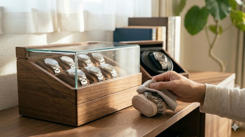 代用という意味では、保管ケース、時計ボックス、やわらかいクロスと乾燥しやすい場所の組み合わせでも十分なことがあります。